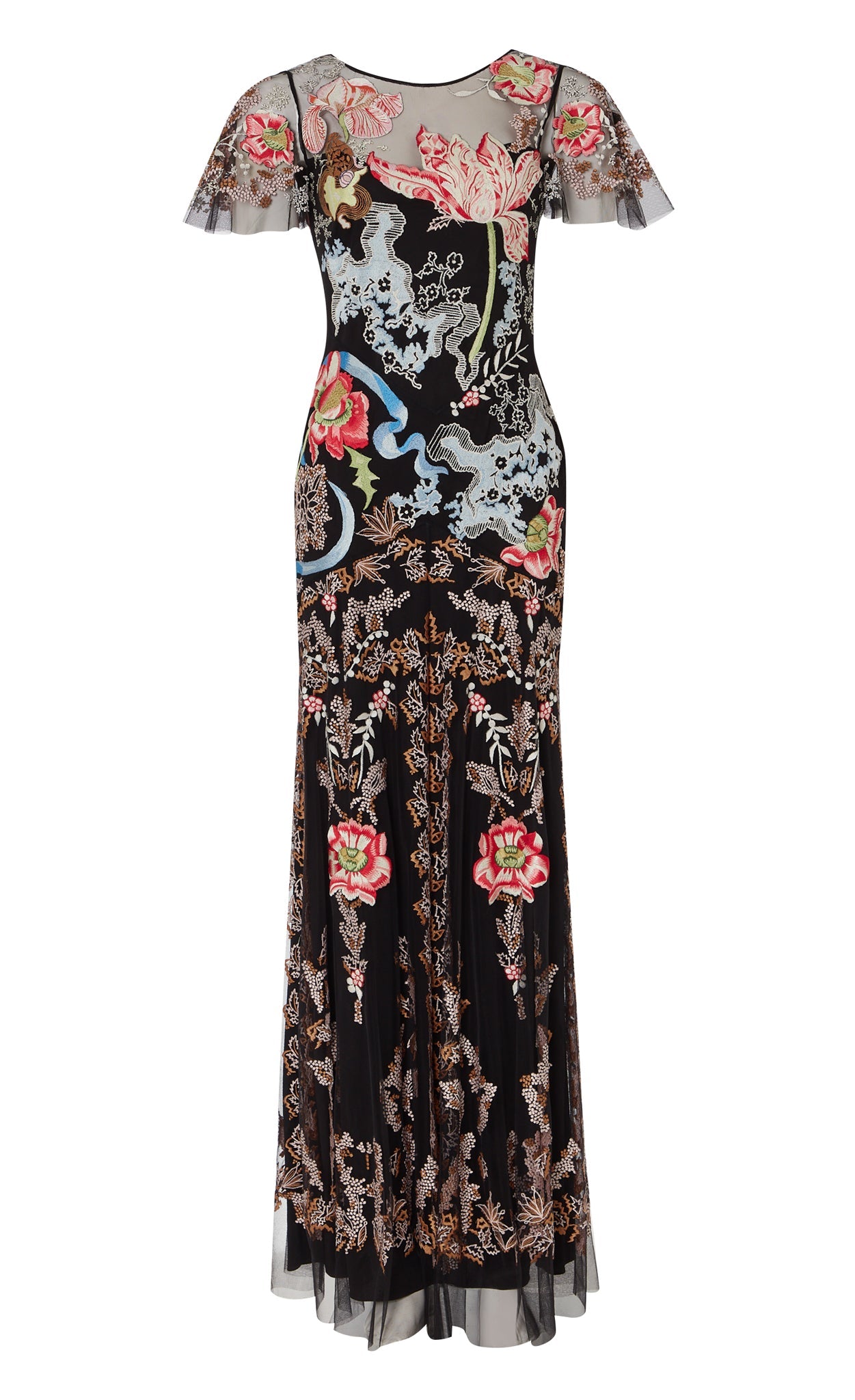 The embroidered detailing is a standout feature, with full, engineered stitching that reflects Temperley¡¯s signature craftsmanship. The design incorporates intricate patterns carefully placed to enhance the overall structure of the gown, making it both a work of art and a statement.