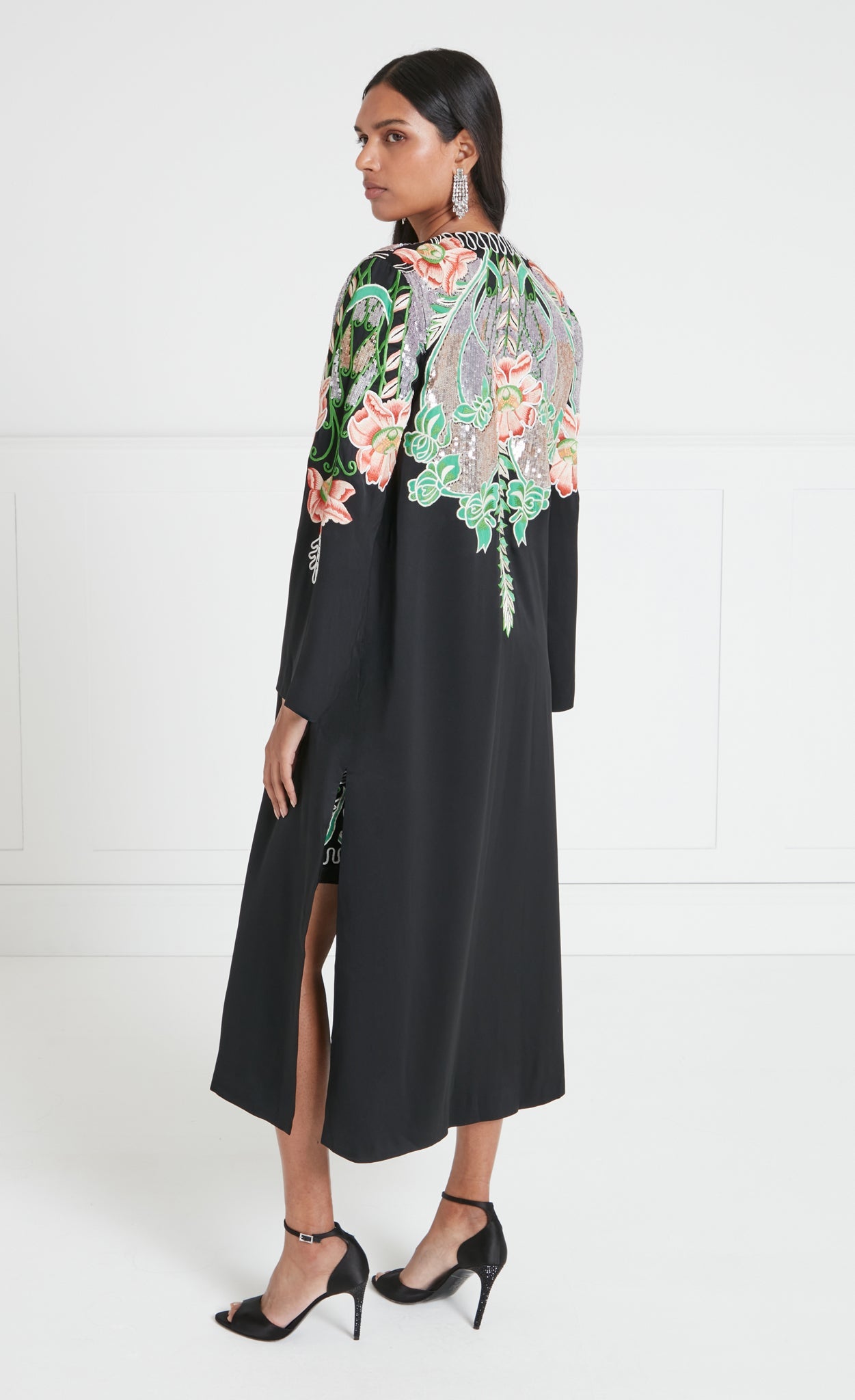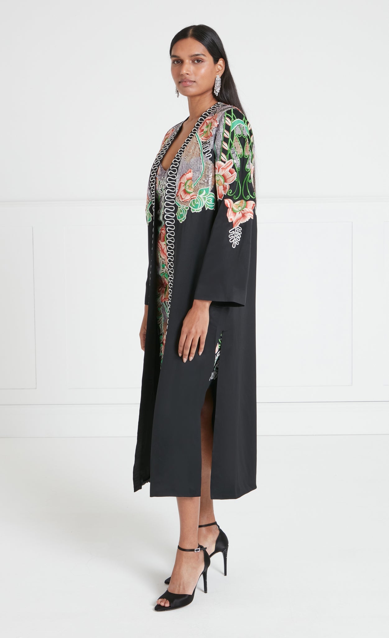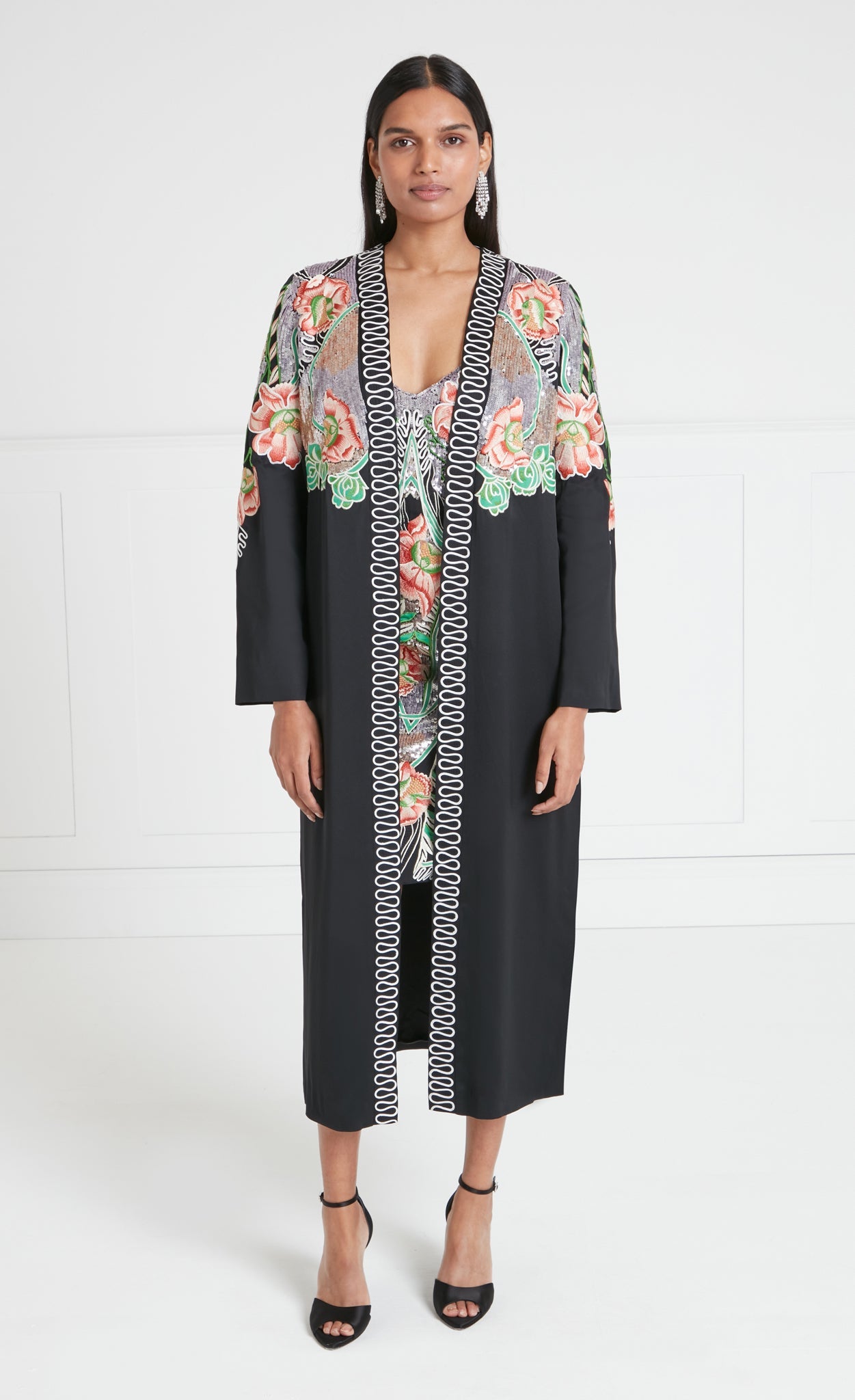The kimono-style Gracia Coat is a romantic showcase of intricate sequin and stitch embroidery, featuring bold floral motifs inspired by Spanish Art Nouveau. It¡¯s a striking choice for statement daywear or evening occasions, especially when teamed with the Gracia Mini Dress.